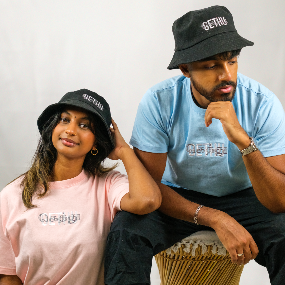 Merging Tamil heritage with a modern edge, this limited edition tee features Gethu’s signature design—an embroidered ‘gethu’ logo on the chest and a bold puff print on the side—seamlessly blending cultural roots with contemporary fashion.